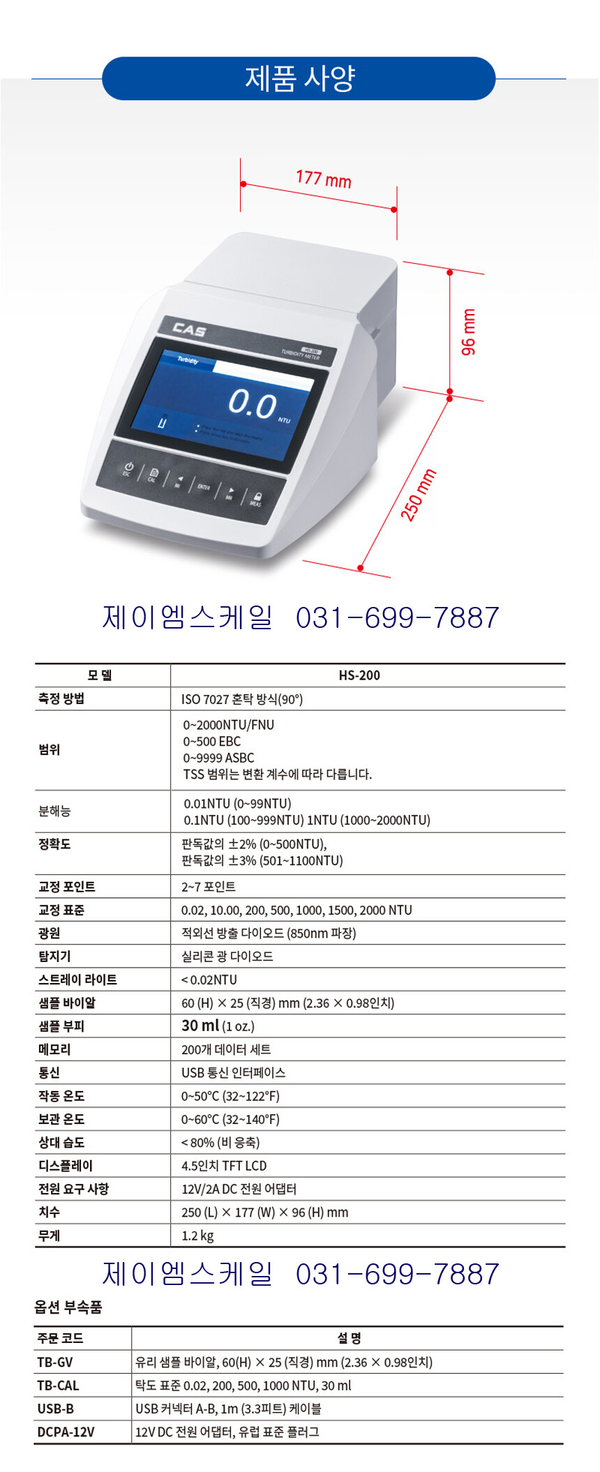 카스 탁상용 탁도계 HS-200