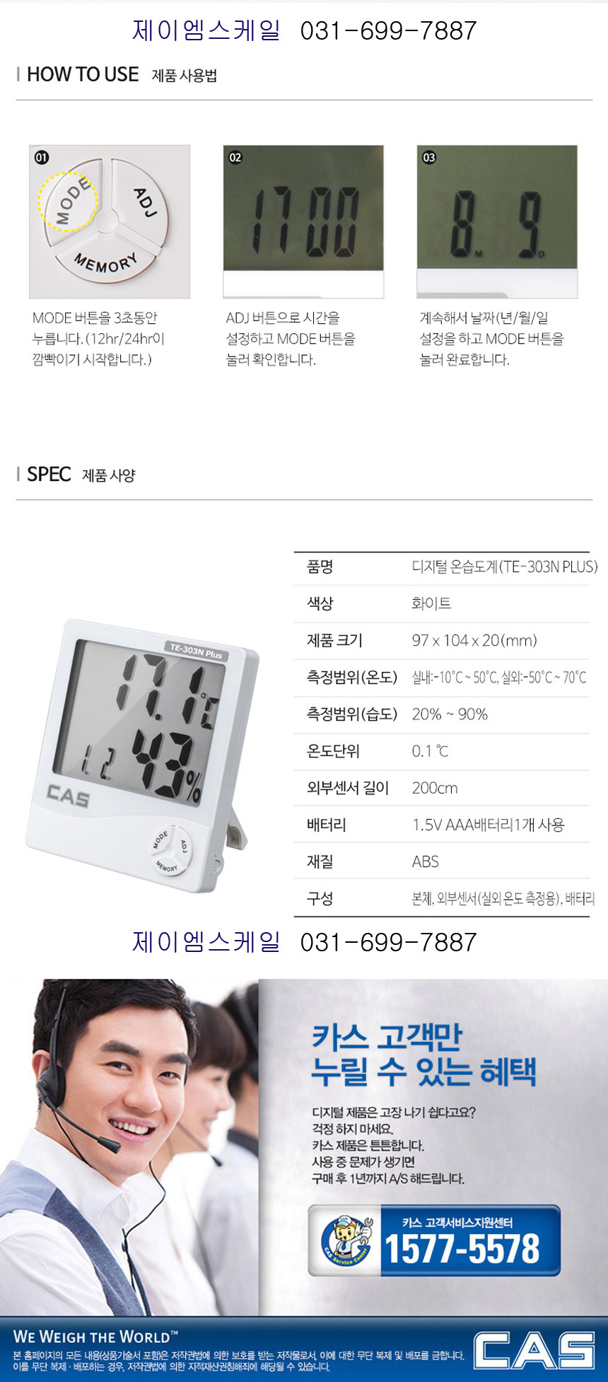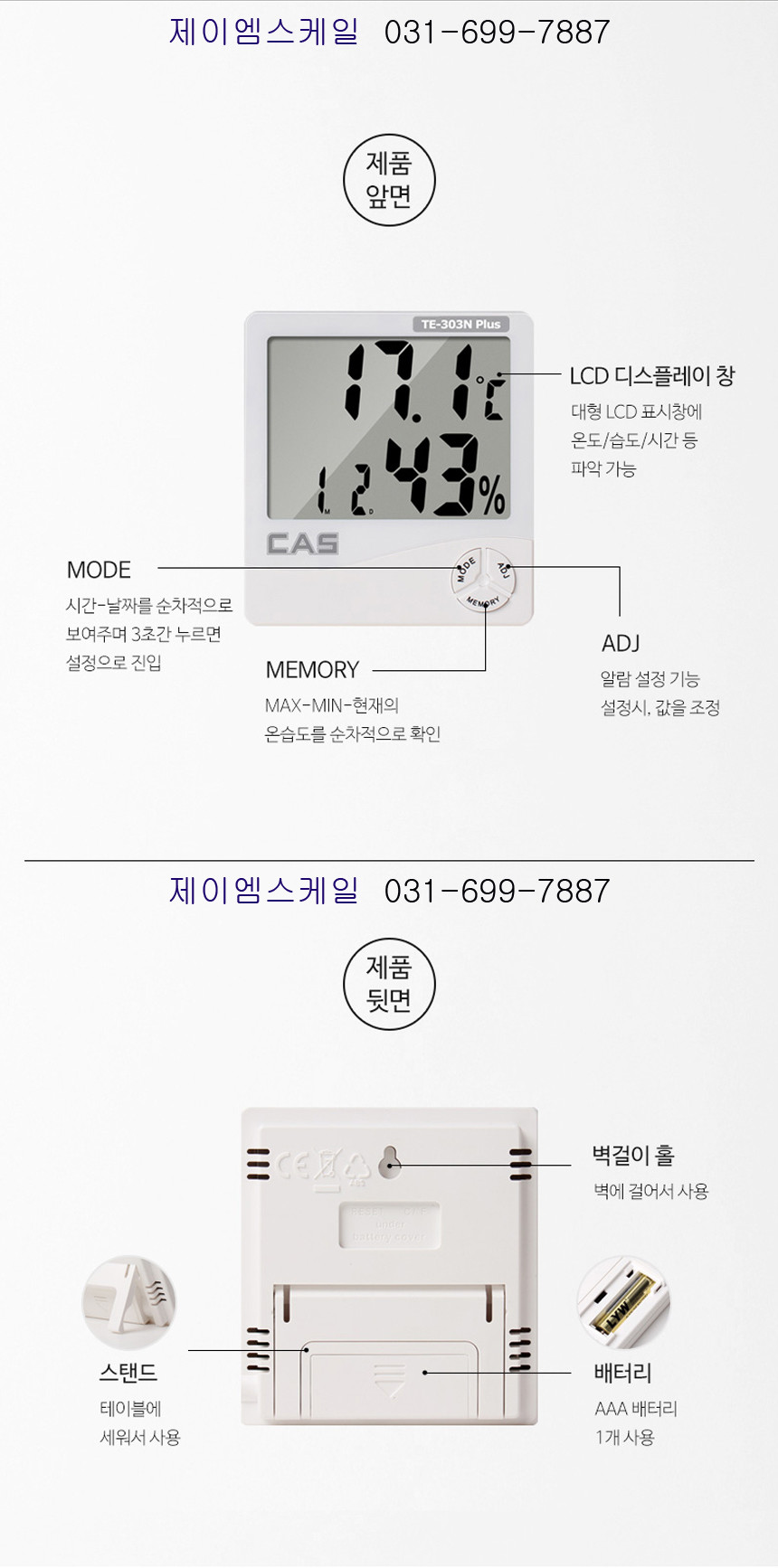 카스 디지털 온습도계 TE-303N PLUS